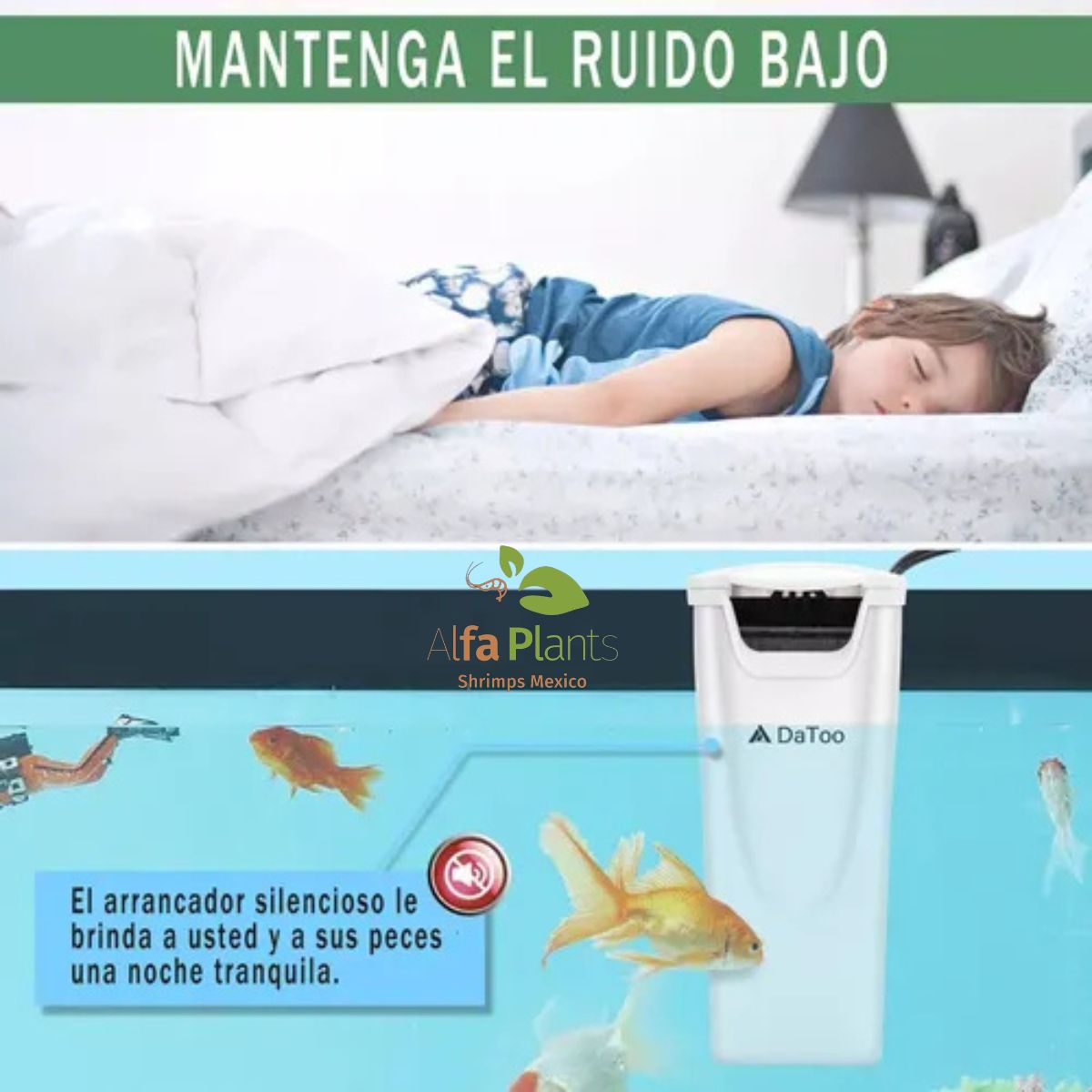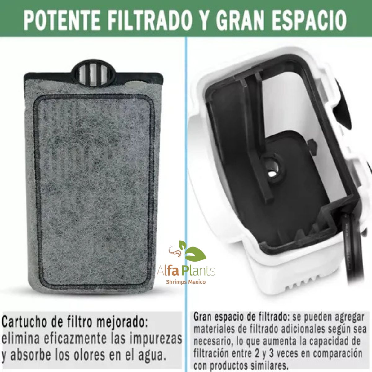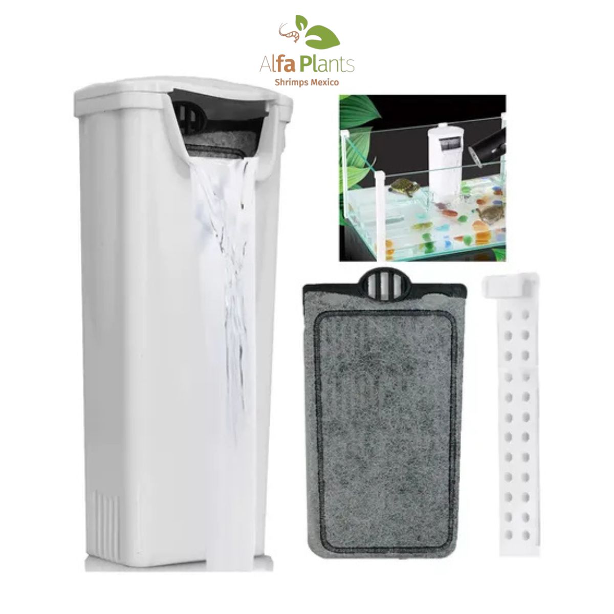 El filtro de cascada interno es silencioso e ideal para acuarios poco profundos.