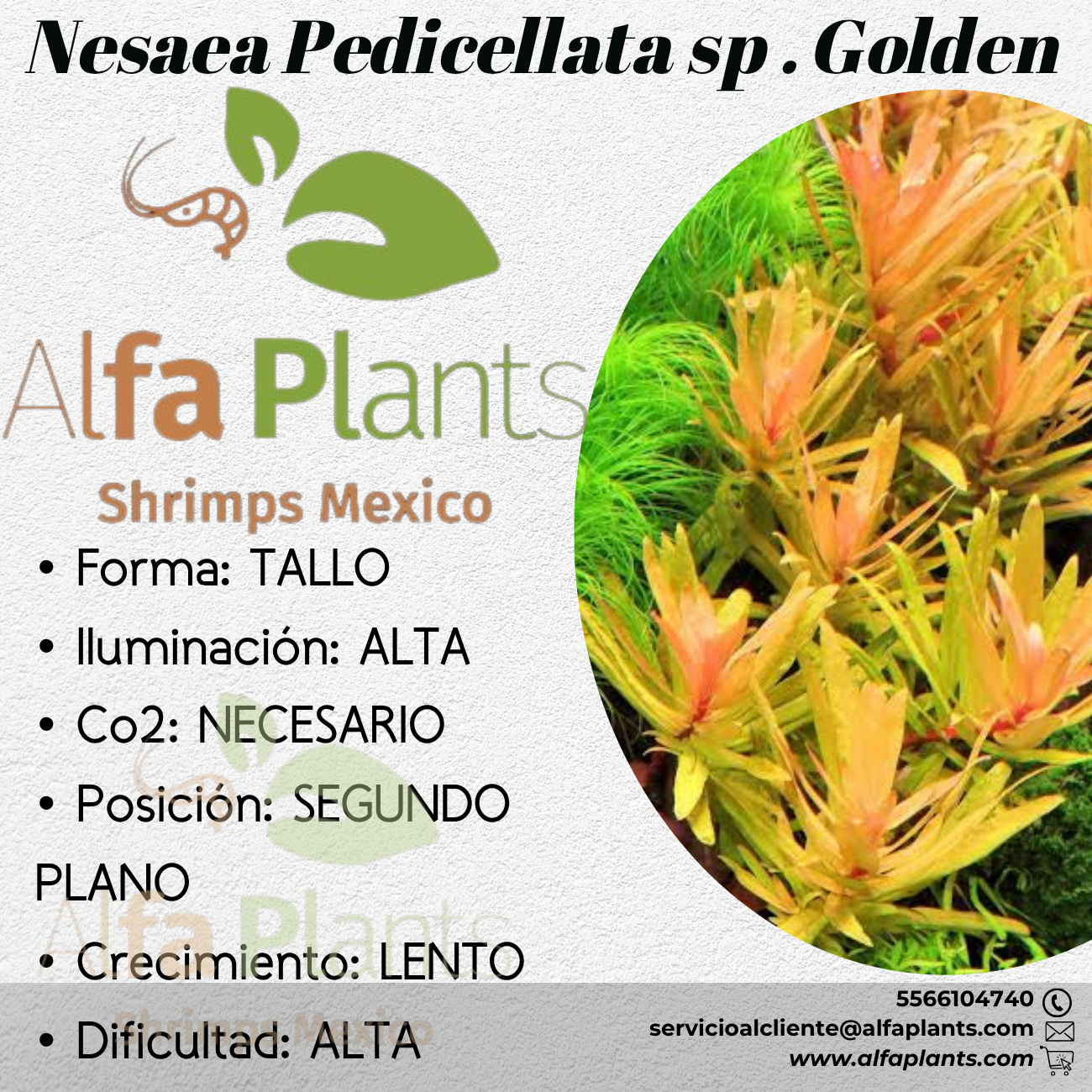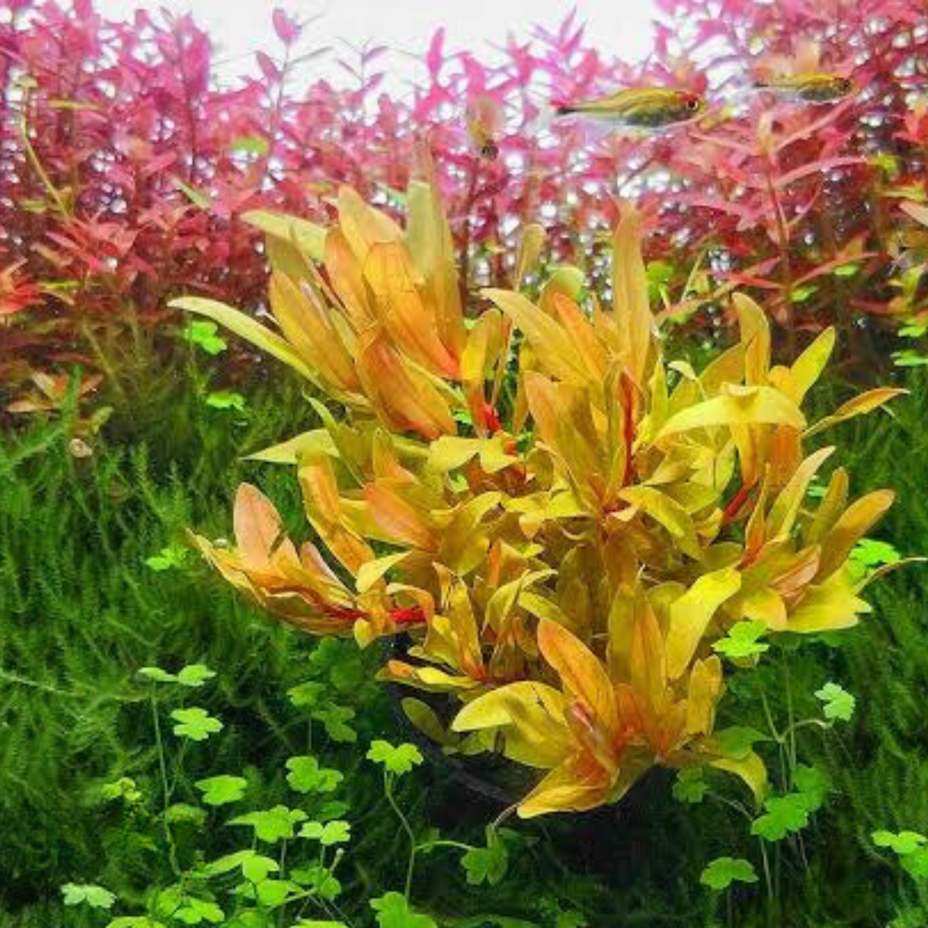 Añade un toque espectacular a tu acuario plantado con la Nesaea Pedicellata 'Golden'. Esta vibrante planta acuática destaca por su impresionante color dorado a amarillo brillante, ideal para crear un punto focal intenso en tu paisaje acuático. Es una planta de tallo de crecimiento moderado que prospera con iluminación media a alta y la adición de CO2, esta planta acuática contrasta muy bien con tonos verdes los cuales puedes conseguir con Hygrophila Difformis. Perfecta para el aquascaping.