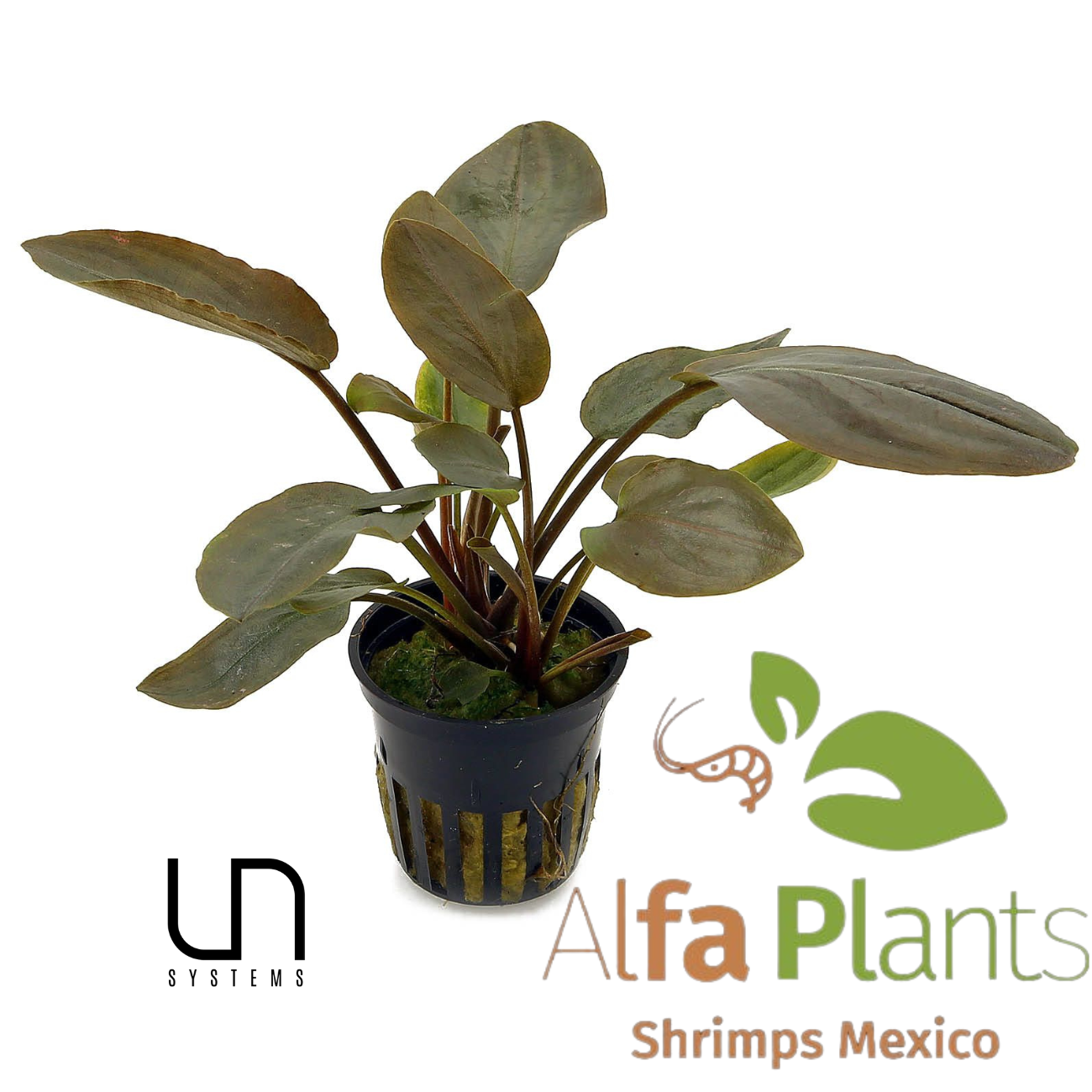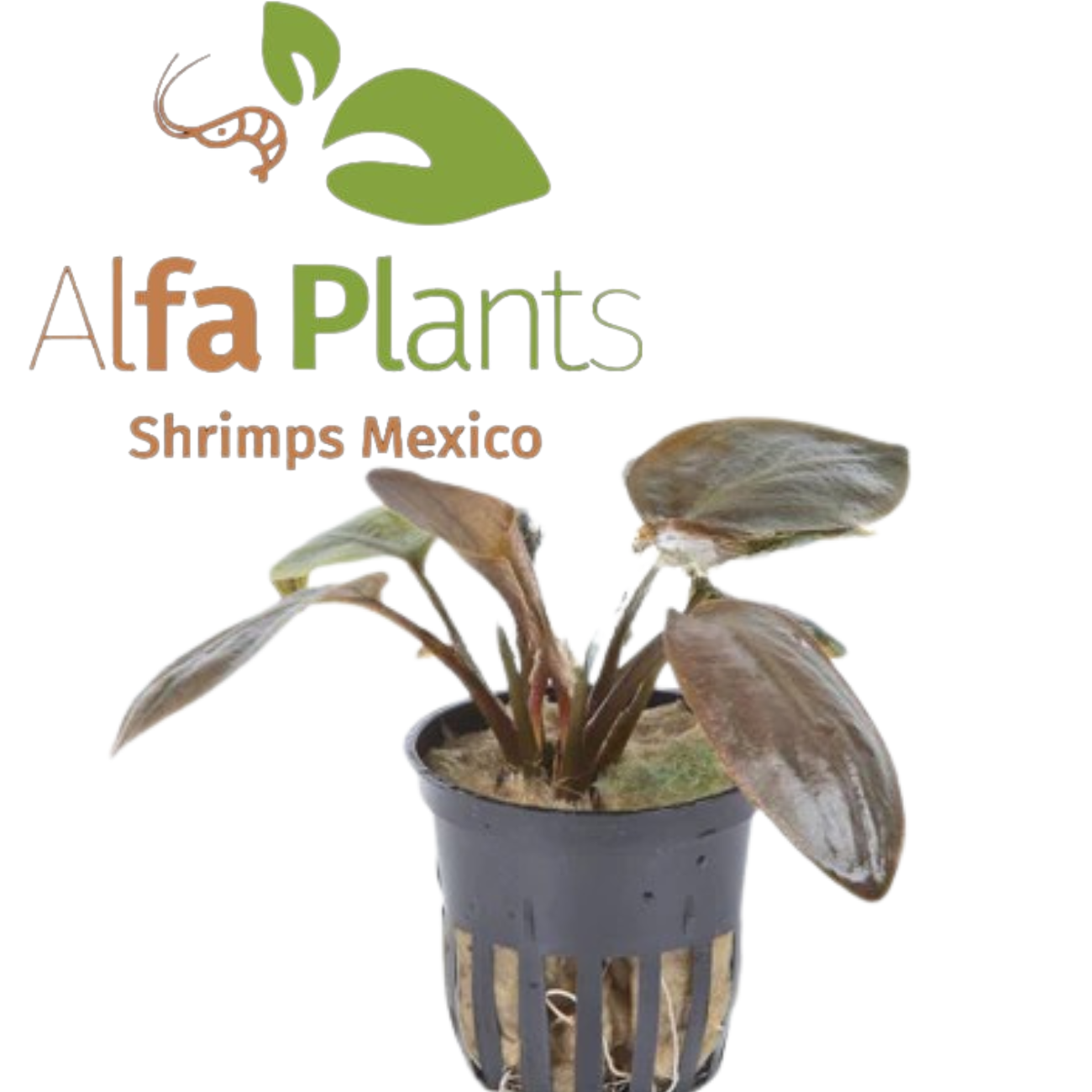 ¡Añade un toque exótico con la Lagenandra Meboldii Red! Una planta acuática de rizoma única, perfecta para la zona media de tu acuario o gambario en Alfa Plants Shrimps México.