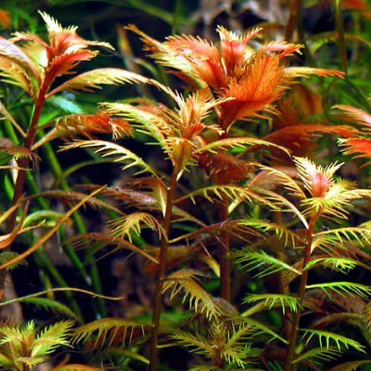 ¡Introduce la espectacular Proserpinaca Palustris 'Cuba' a tu acuario plantado! En Alfa Plants Shrimps México te ofrecemos esta joya acuática, también conocida como "Mermaid Weed", ideal para aquascaping. Sus hojas dentadas y su fascinante cambio de color, de verde a un intenso rojo cobrizo, la convierten en un punto focal inigualable en el plano medio o fondo de tu tanque, otra planta que puedes utilizar de hojas dentadas es la Hygrophila Pinnatifida.