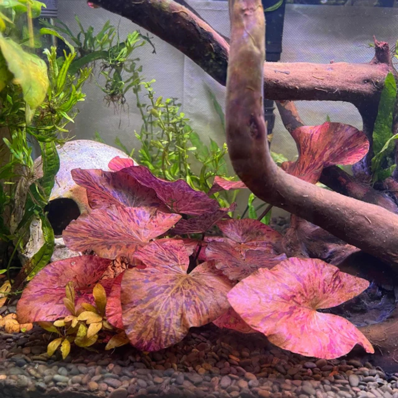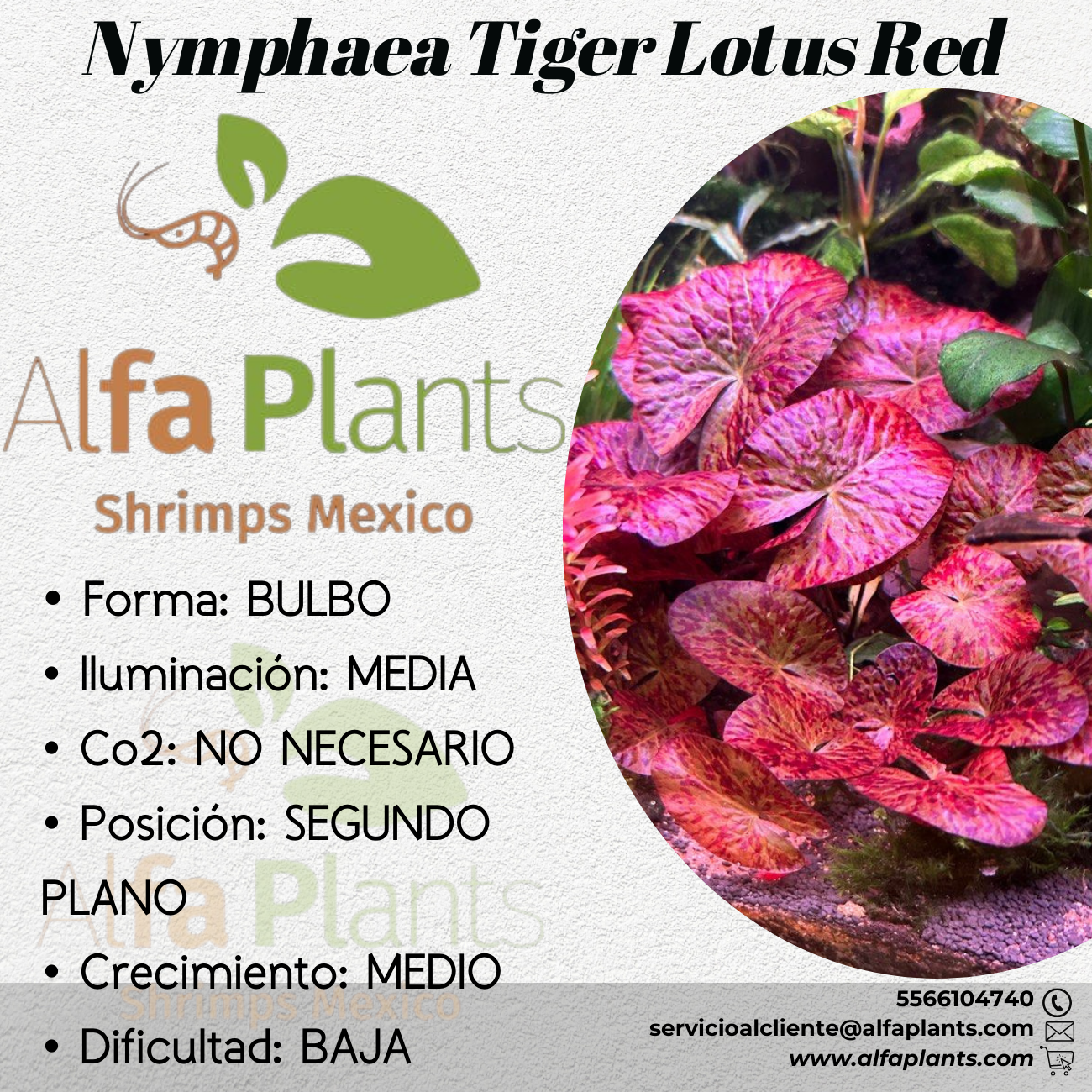 Transforma tu acuario con la Nymphaea Tiger Lotus Red (Loto Tigre Rojo), la planta acuática ideal para añadir un vibrante color y un punto focal espectacular. Este bulbo es una planta de acuario popular, de fácil cuidado, perfecta para pez Betta, gambarios, principiantes y expertos.
